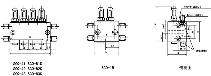 SGQ系列雙線給油器適用于公稱壓力為10MPa的雙線式干油集中潤滑系統(tǒng)中,作為一種計(jì)量給油裝置。它在二條供油管交替的供油壓力作用下,由供油壓力推動(dòng)活塞給油,完成向各潤滑點(diǎn)定量分配潤滑脂的功能。